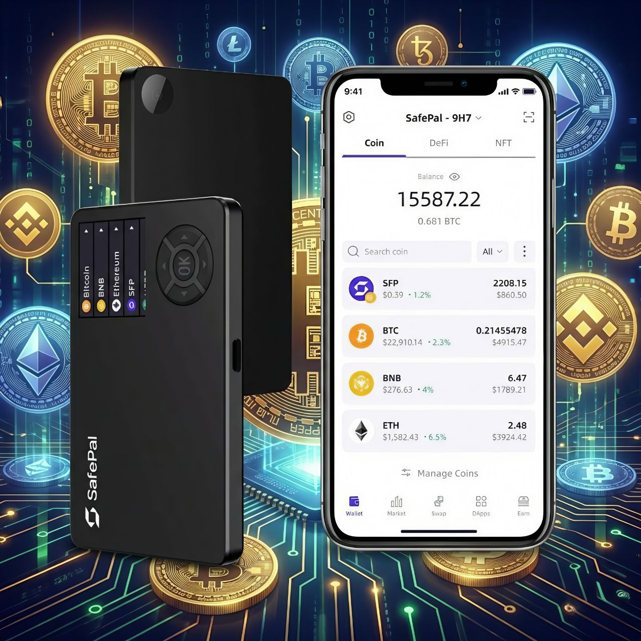 این دستگاه بهصورت کامل آفلاین کار میکند و از هیچگونه اتصالات بلوتوث، وایفای یا USB استفاده نمیکند، که این ویژگیها خطر حملات هکری را به حداقل میرساند. سیف پل اس وان ارزهای دیجیتال محبوبی همچون بیتکوین (BTC)، اتریوم (ETH)، بایننس کوین (BNB)، تتر (USDT) و پولکادات (DOT) و … پشتیبانی میکند. همچنین، SafePal S1 از توکنهای ERC-20، BEP-20، SPL و TRC-20 نیز پشتیبانی میکند که شامل طیف وسیعی از توکنها میشود