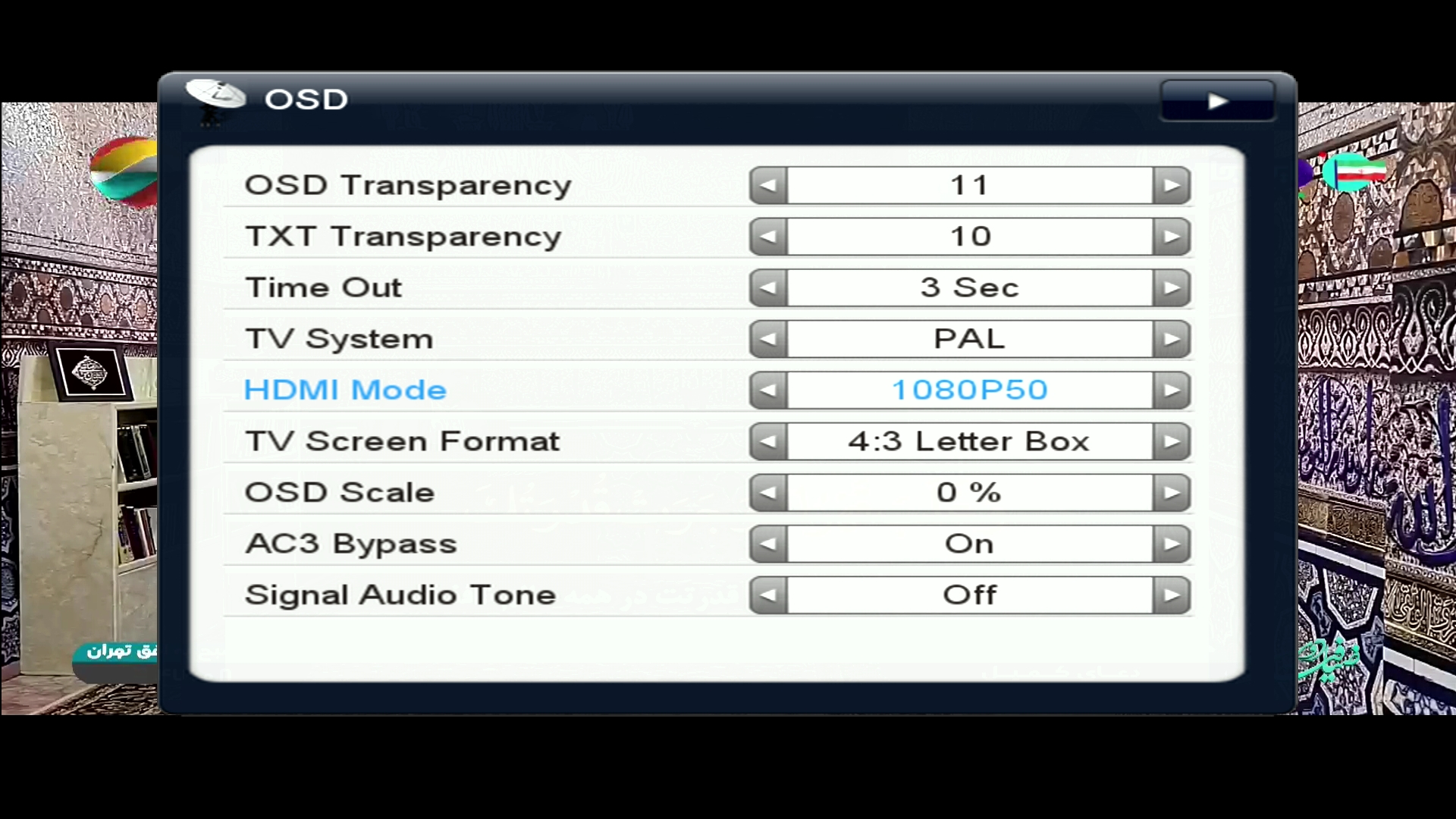 * تغییر رزولوشن: در قسمت Video Resolution یا Display Mode، با کلیدهای چپ و راست روی ریموت، گزینهها را تغییر دهید.